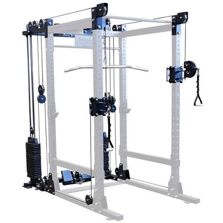 Transforms the SPR1000 Power Rack into a power rack, functional trainer, and lat pulldown machine