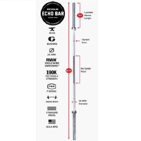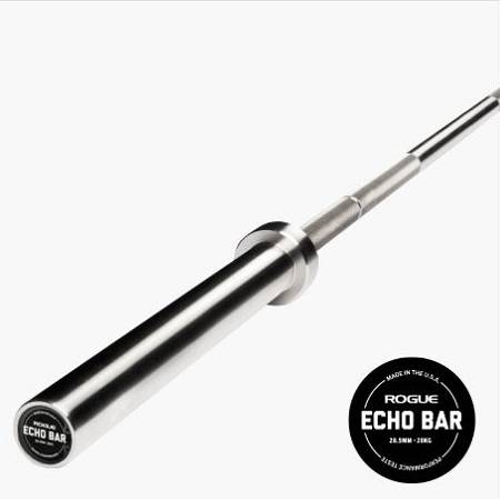 MEN'S 20KG MULTI-PURPOSE BARBELL Engineered to be a versatile barbell, the Rogue Echo Bar 2.0 excels in a wide range of movements, spanning from the bench, squat, and deadlift to the clean, snatch, and everything in between.